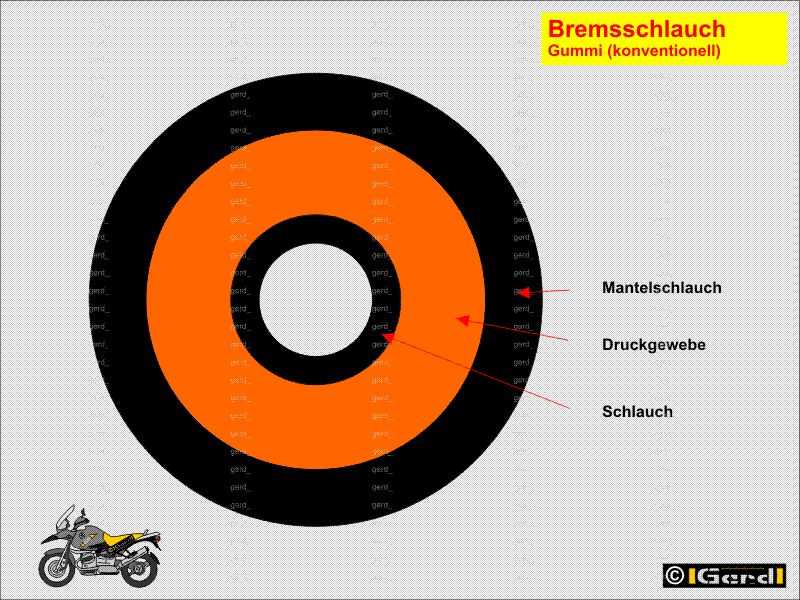 Beim „Gummi“ fliesst die Bremsflüssigkeit durch einen fluidresistenten Gummischlauch. Nachdem im Betrieb einige Bar Druck anliegen wird dieser Schlauch von einem Gewebe umhüllt welches das Dehnen verhindern soll. Als dritte Schicht umhüllt ein weiterer Schlauch das Gewebe, schützt dieses gegen mechanische Einflüsse von aussen und stützt es.