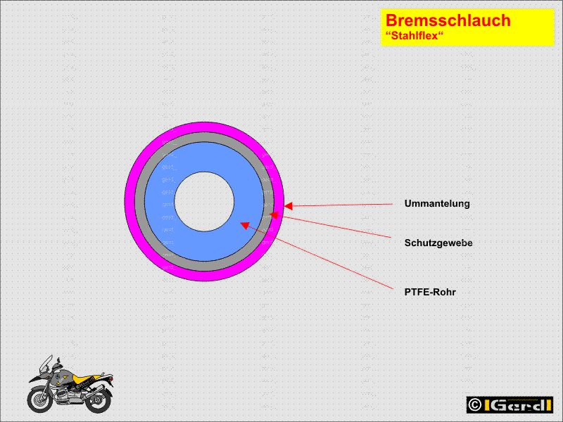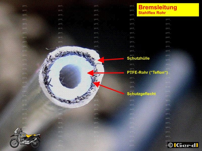 Beim „Stahlflex“ fliesst die Bremsflüssigkeit durch ein PTFE-Rohr. Das ummantelnde Stahlgewebe dient nur dem Schutz des PTFE-Rohrs. Die zuweilen zusätzlich vorhandene Kunststoffummantelung schützt einerseits das Stahlgewebe vor Wasser und Dreck andererseits Lackteile vor dem scheuernden Stahlgewebe.