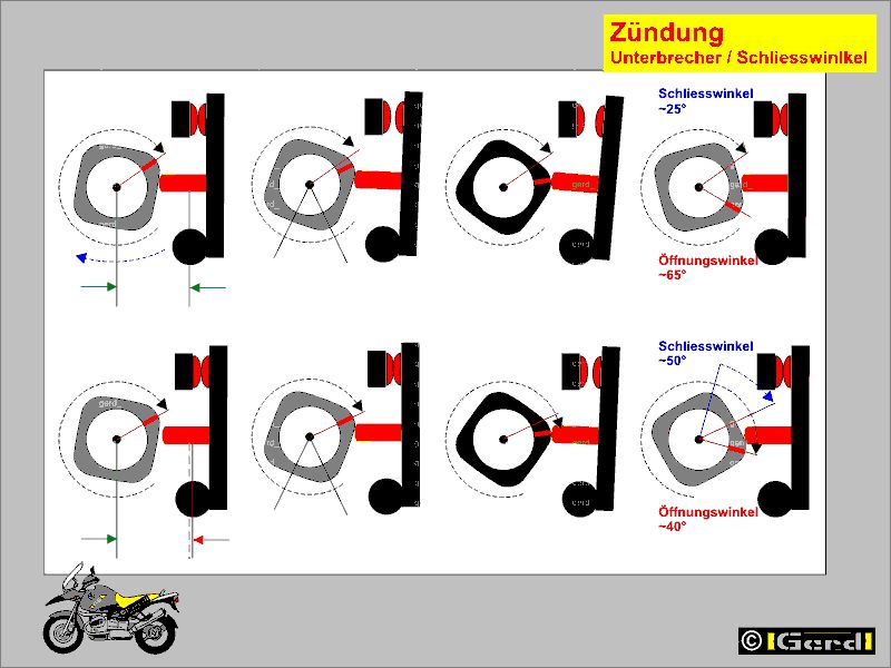 Erst ab den R1200 werden die Zylinder einzeln (selektiv) gezündet. Offenbar ist erst seither die Rechenleistung der Prozessoren ausreichend (billig). Mit einzeln gesteuerten ZS sind dann Schliesswinkel von fast 340° (NW!!) mit entsprechend kleinen Ladeströmen möglich.