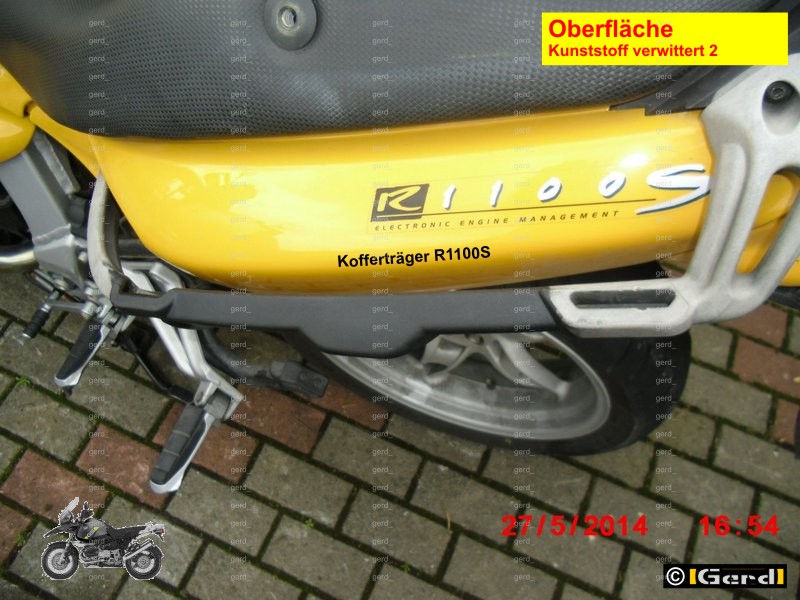 Hier der Selbsttest an den total verwitterten Kofferträgern eines Spezls.