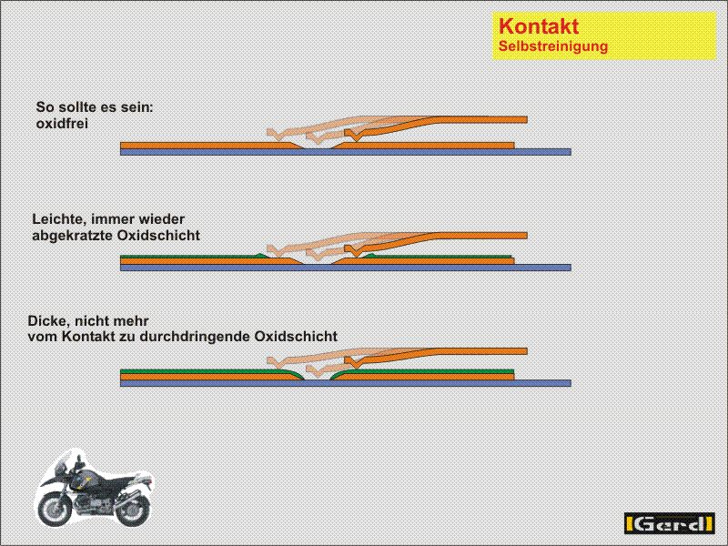 Alle mechanischen Schalter haben dann wenige Probleme, wenn ihre Kontaktflächen zueinander verschoben werden und dies auch regelmässig geschieht. Dabei „schmirgeln“ sich die Kontakte genau dort wo sie es brauchen frei. Werden sie länger nicht benutzt schaffen sie es nicht mehr weil die Oxidschicht zwischenzeitlich zu dick/hart wurde. Schalter deren Kontakte sich nur aufeinander zubewegen (Taster) haben es schwerer.